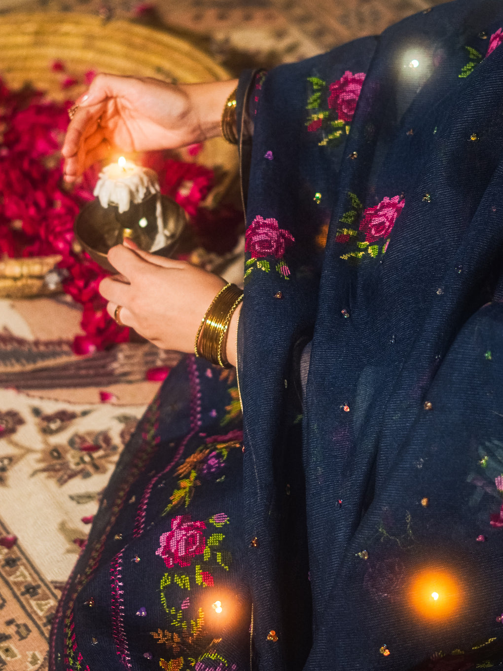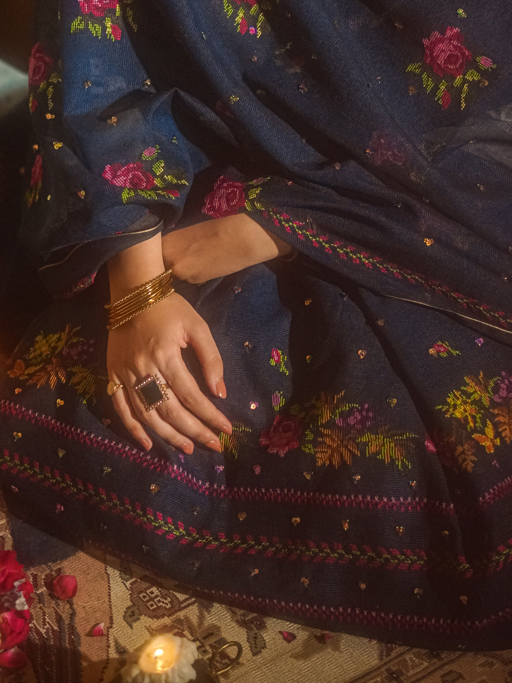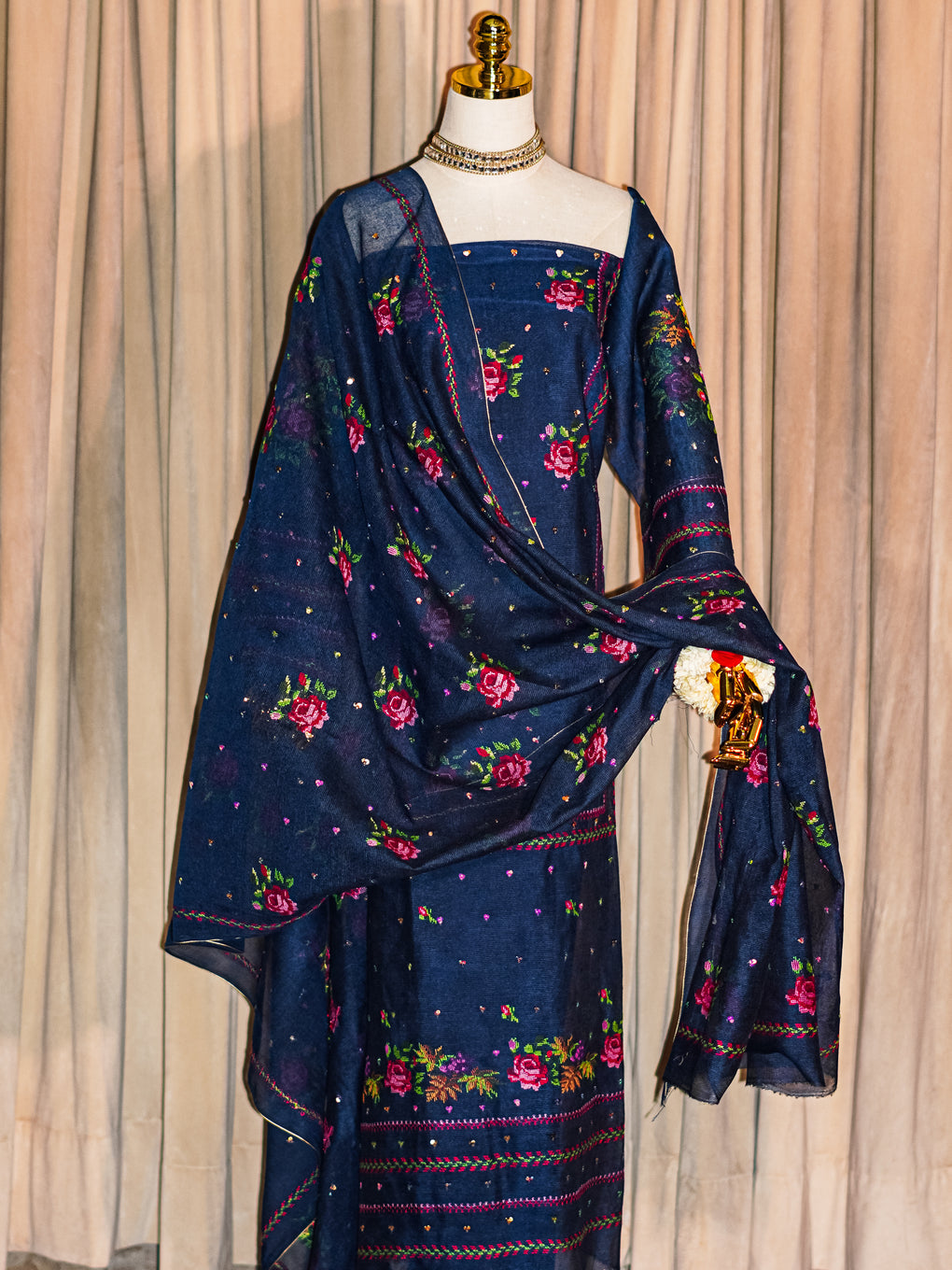 cross stitch embroidery embellished with sitara.